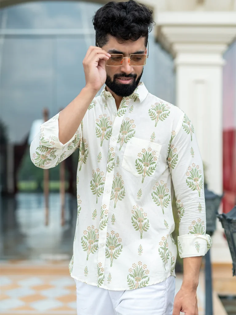 Be the first to review “SANGANERI SHIRT White and Green Full”
